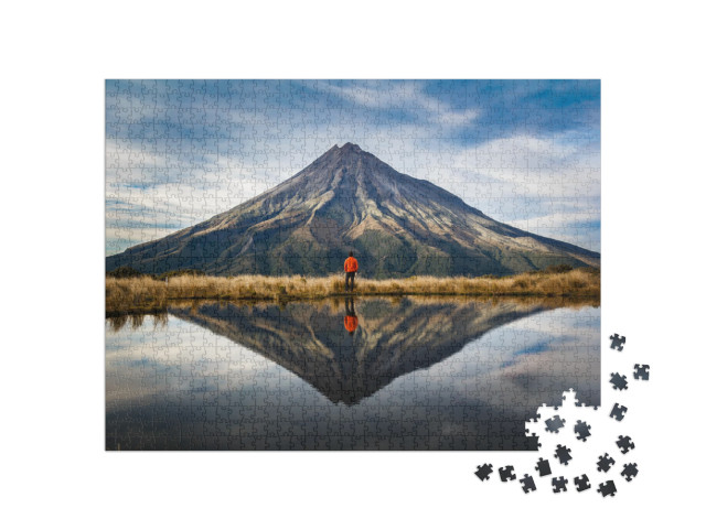 Puzzle « Alpiniste sur le volcan Taranaki, Nouvelle-Zélande »