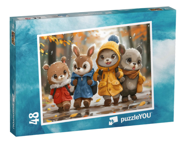 Puzzle « Amis des animaux sur le chemin pluvieux de l'école »