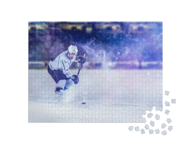 Puzzle « Joueurs de hockey sur glace en action lors d'un tir à la crosse »