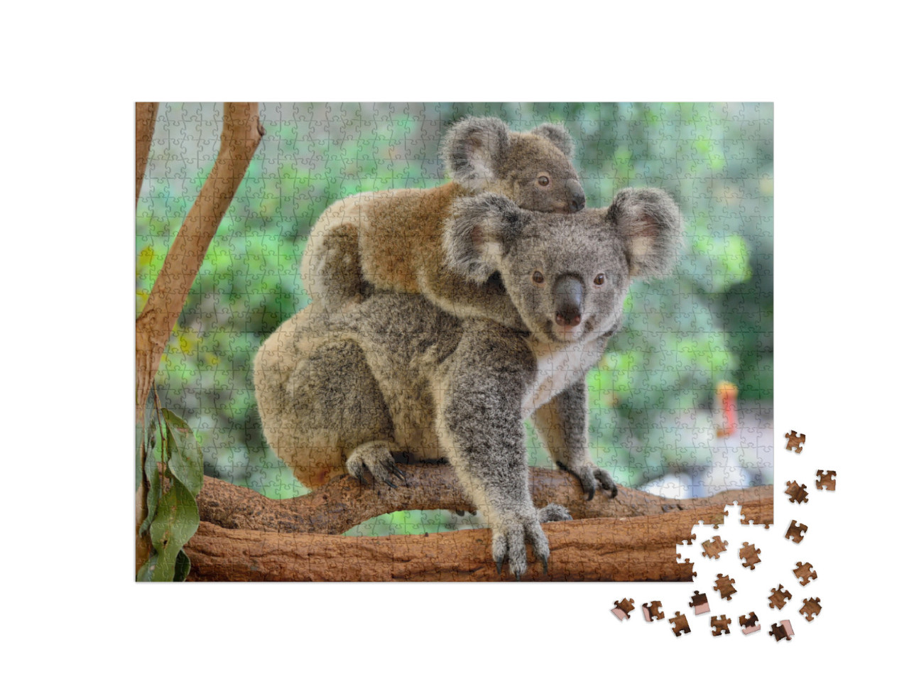 Puzzle « Mère koala avec bébé sur le dos sur un eucalyptus »