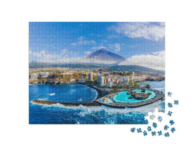 Puzzle « Vue aérienne avec Puerto de la Cruz et le volcan Teide, Ténérife, Espagne »
