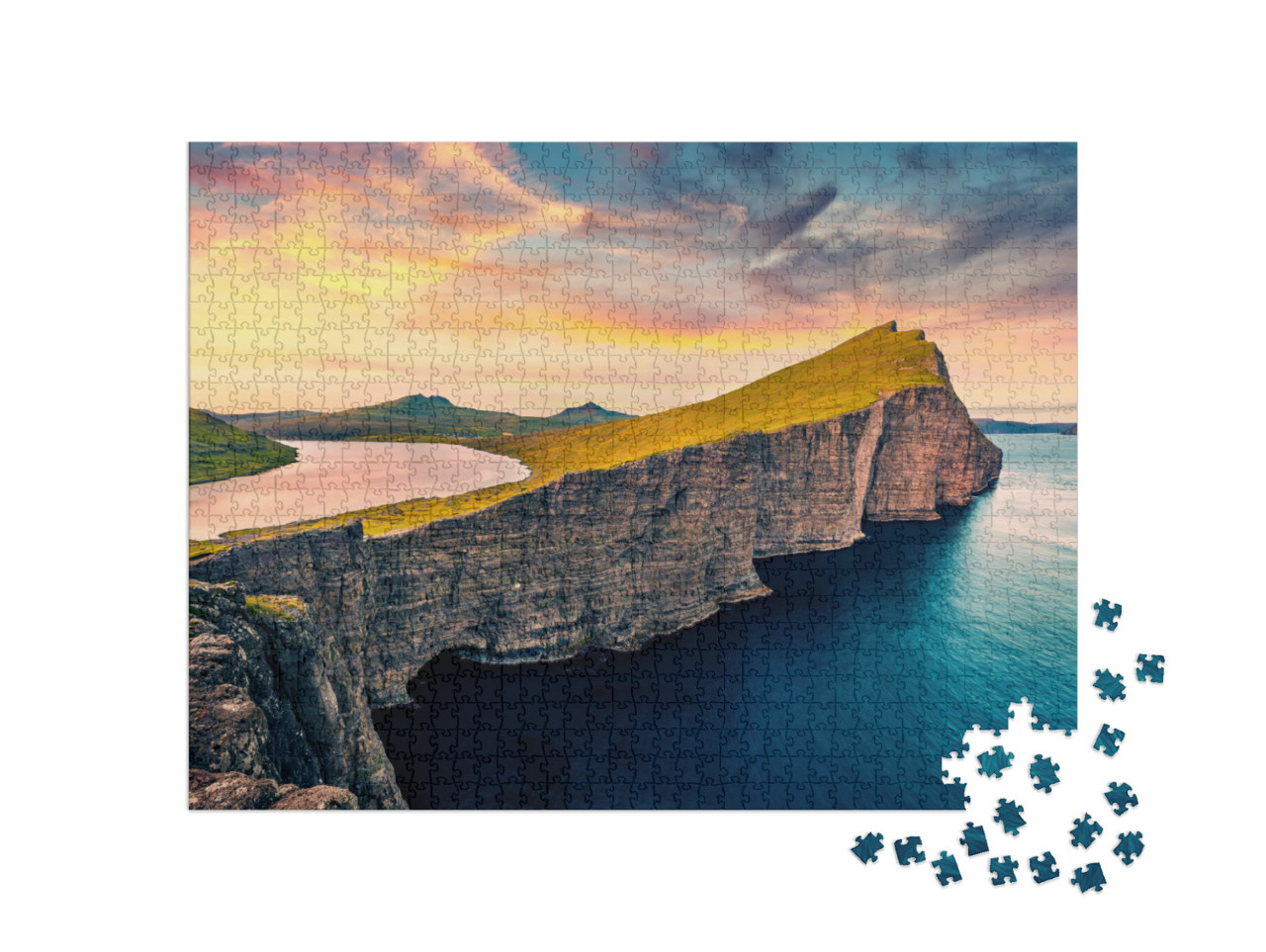 Puzzle « Vue aérienne du lac Sorvagstan le matin (Îles Féroé) »