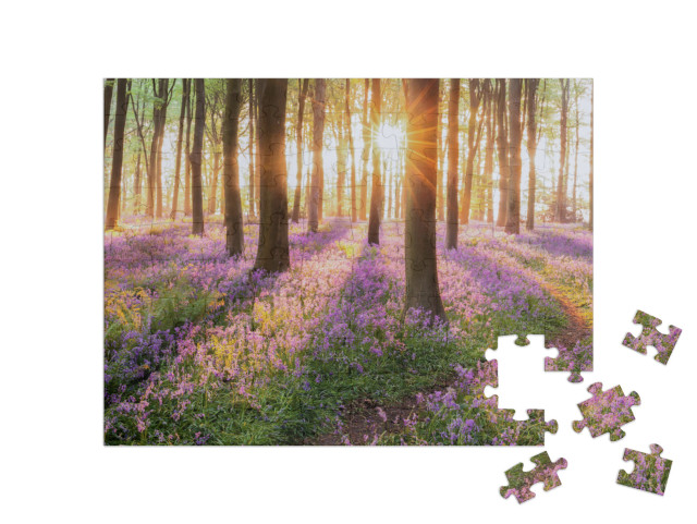 Puzzle « Une mer de cloches bleues le matin dans la forêt »