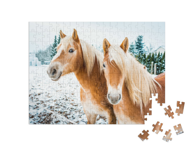 Puzzle « Chevaux Haflinger dans une prairie enneigée »