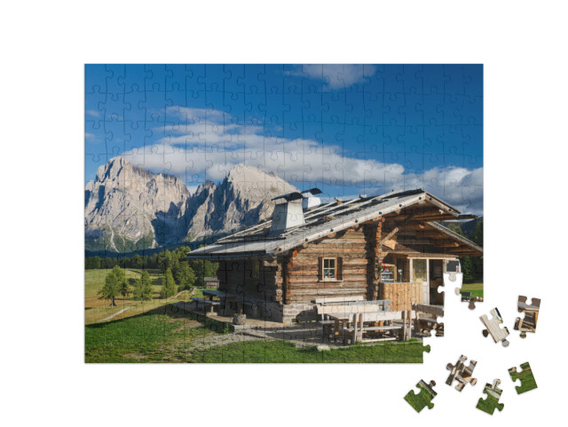 Puzzle « Refuge sur l'Alpe de Siusi avec le Plattkofel et le Langkofel, Tyrol du Sud »